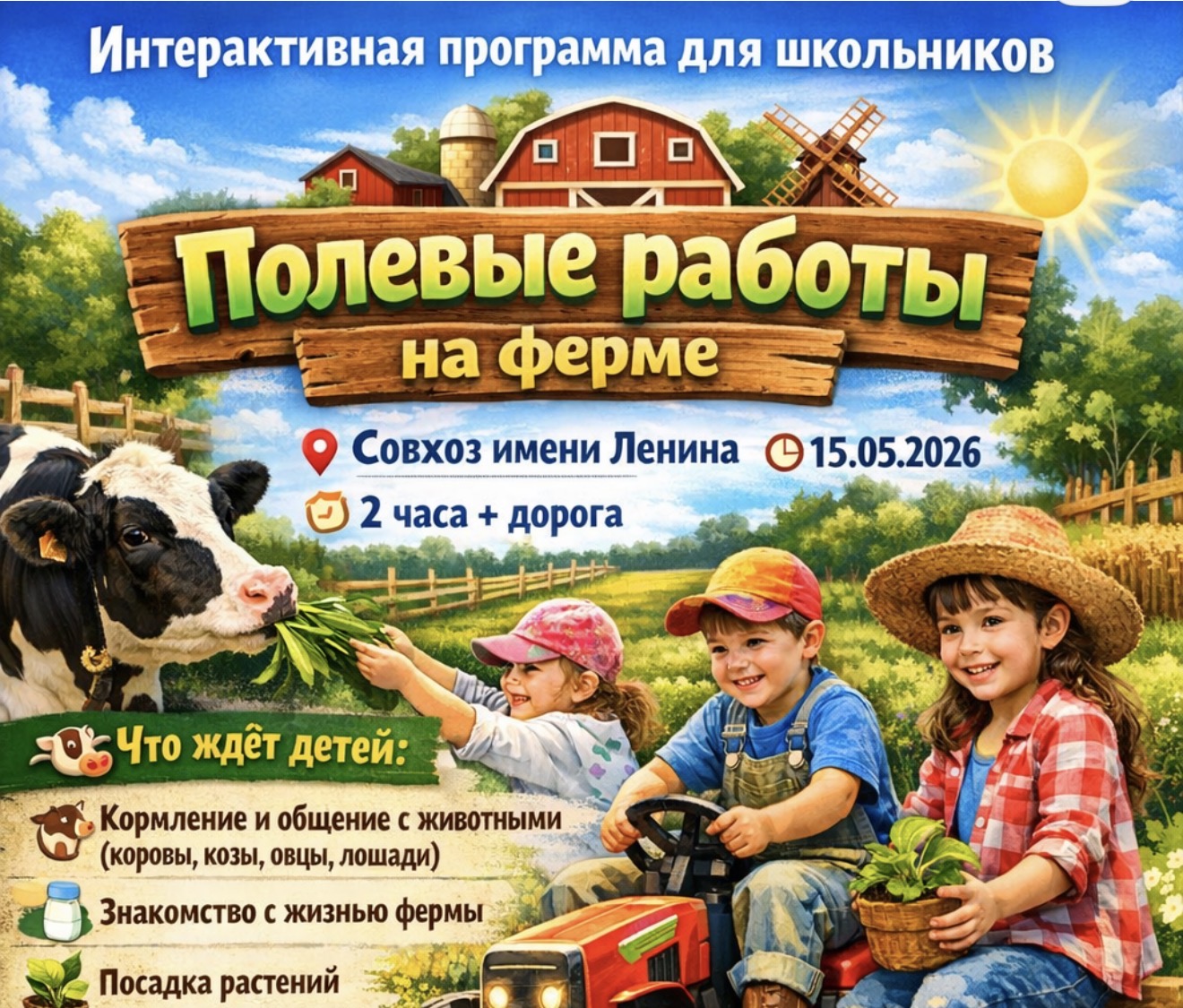 15.05. Интерактивная Экскурсионная программа для школьников. «Полевые работы» на Ферме.